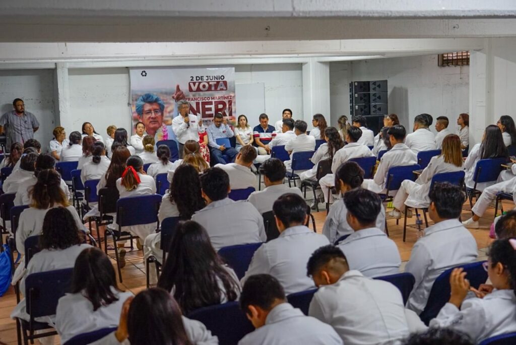 Ante integrantes de la planilla, personal directivo y docentes, Martínez Neri resaltó que el proyecto que encabeza considera a las juventudes como entes principales de la transformación, por lo que compartió el compromiso de seguir trabajando en la gestión e impulso de mejores oportunidades hacia la mejora de la calidad de vida de este importante sector.